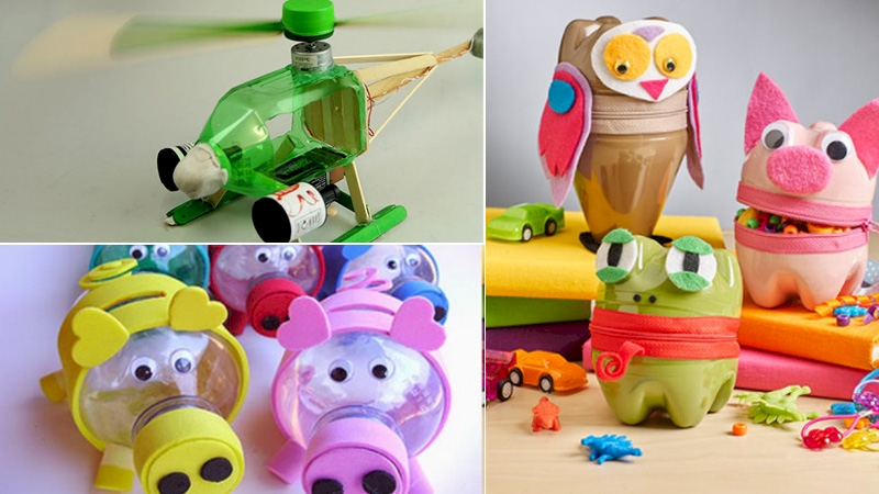 - Tận dụng chai nhựa cũ biến hóa thành đồ chơi